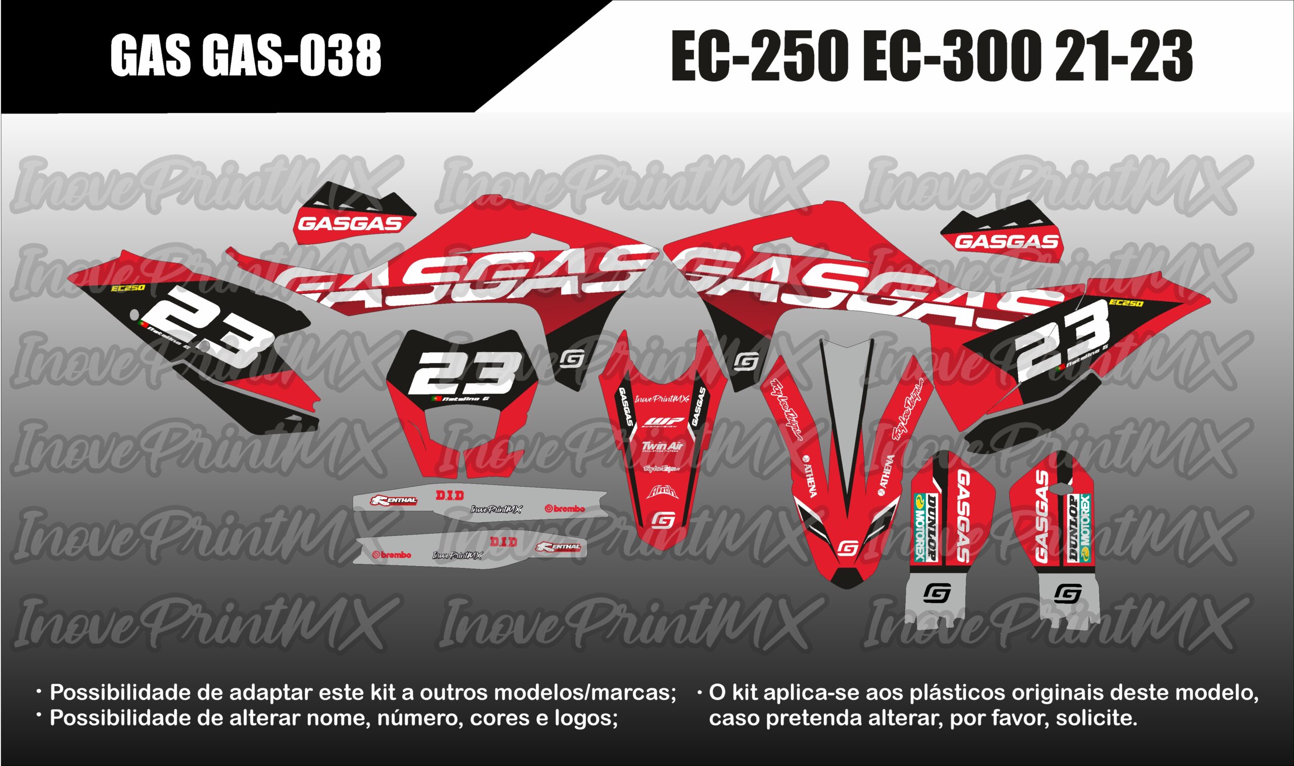 Solicite, por favor, as alterações pretendidas (nome, número, cores, etc). Possibilidade de adaptar este kit para holografico/cromado. Também dispomos de diversos acabamentos como Mate, Glitter; Fluorescente, laminação 3D, Lâminação Texturada, etc.