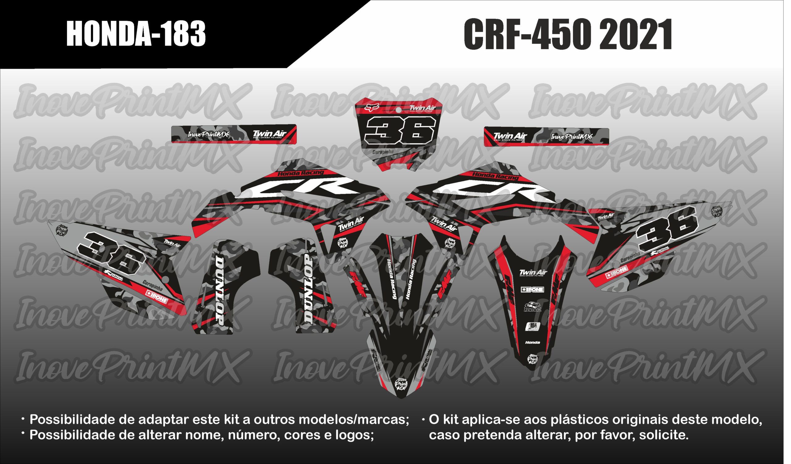 Solicite, por favor, as alterações pretendidas (nome, número, cores, etc). Possibilidade de adaptar este kit para holografico/cromado. Também dispomos de diversos acabamentos como Mate, Glitter; Fluorescente, laminação 3D, Lâminação Texturada, etc.